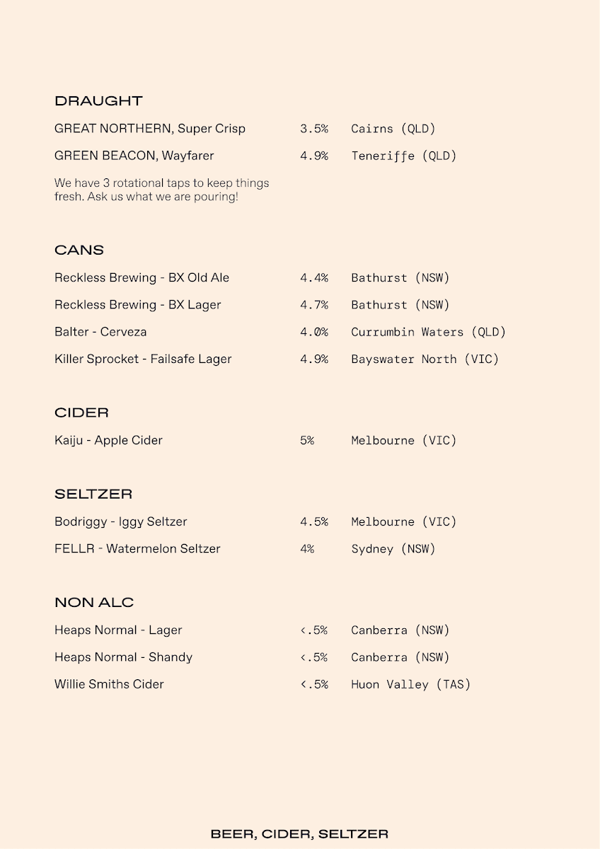 Fables Bar & Café is more than just a coffee stop; it's a haven for those who appreciate the art of brewing. Partnering with Allpress for their coffee, every sip of a Black Coffee (A$4.50) awakens your senses with its rich flavor, while the Milk Coffee, Chai Latte, and Hot Chocolate (all at A$4.30) provide a comforting embrace on any day. If you’re looking for something refreshing, try their Iced Long Black or Iced Batch for just A$5.00, or indulge in an Iced Latte at A$5.50 that’s simply divine. Each beverage is crafted with care, reflecting the team's dedication to quality.